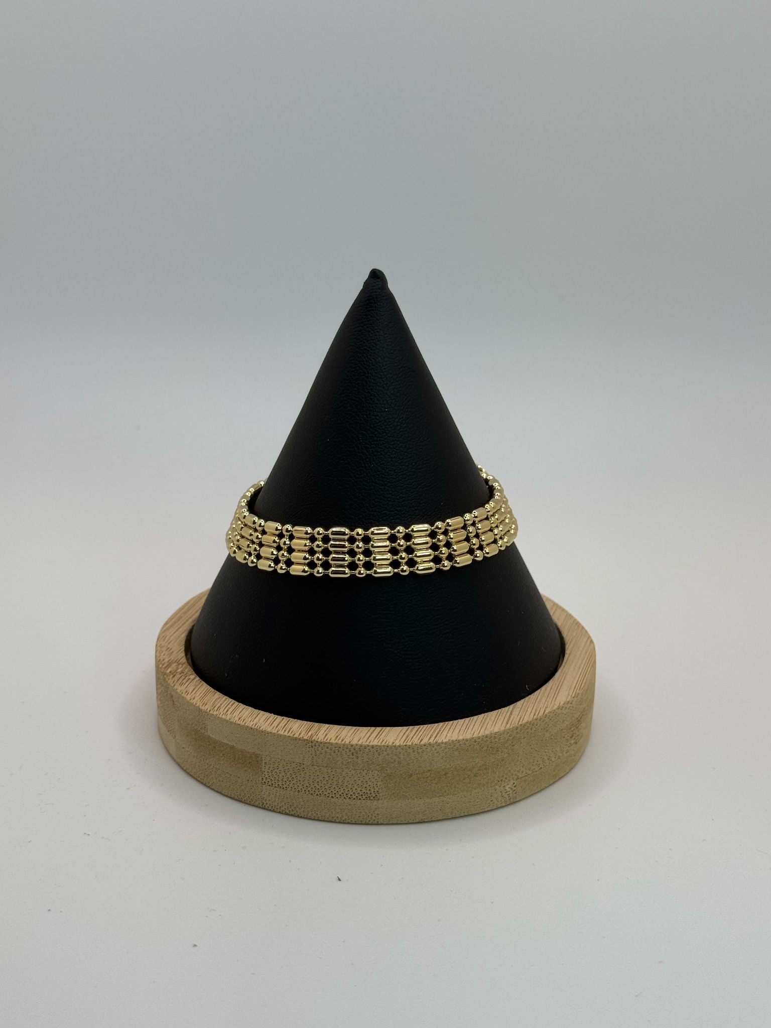 Un accesorio sofisticado y versátil que aporta un toque de lujo a cualquier look. Su acabado en oro laminado resalta su diseño refinado, ideal para quienes buscan estilo y distinción en cada detalle. Perfecta para combinar con un anillo sutil que complemente su elegancia.